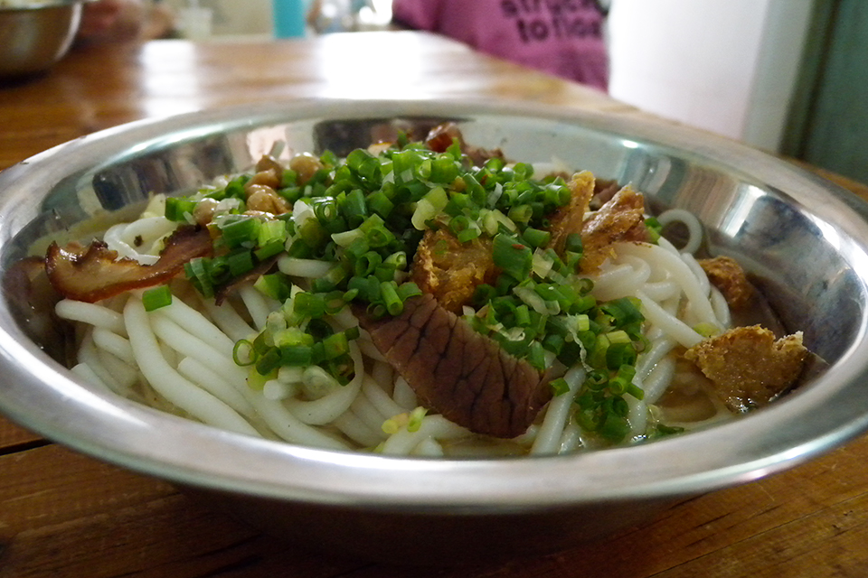 起床は10時過ぎと若干遅め。日本時間だと11時、結構遅めな気がしてきた。さすがに、ここ2日間の疲れがガツンと体に影響を与えたのだろうか。さて、朝食兼昼食を取るべく、近場のミーファン屋さんに宿のオーナーに連れて行ってもらった。宿の近くの路地に店を構える現地人御用達のお店だ。観光客向けでないため、値段も量もトッピングも現地テイスト。これがまた美味しい。つるりと喉を通る麺は陽朔で食したそれとはまた違う。桂林の麺はほろりと柔らかいんだよね。店にもよるのかもしれないけれど、同じ料理で違う味を楽しめるのはおもしろい。土地柄を感じ取ることができるから。